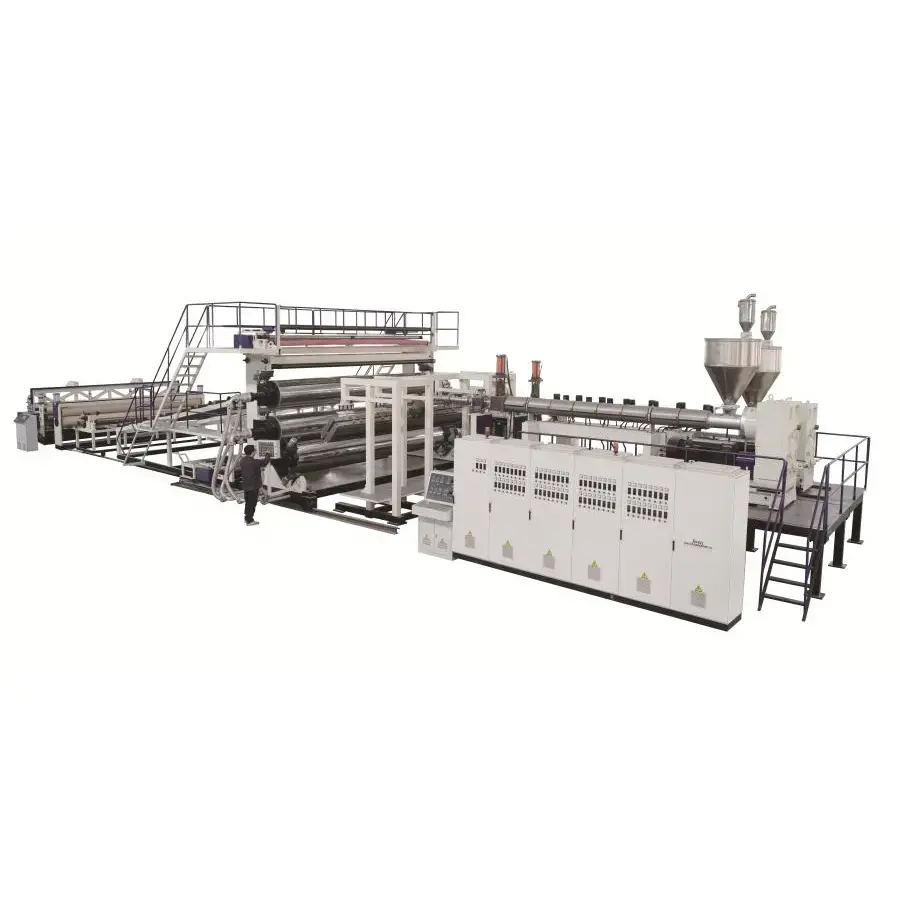مواد اولیه پلیمری در این مرحله ذوب و به صورت یکنواخت به ورق تبدیل میشوند. کیفیت اکسترودر و سیستم تغذیه مواد بر یکنواختی ضخامت ورق تأثیر مستقیم دارد.